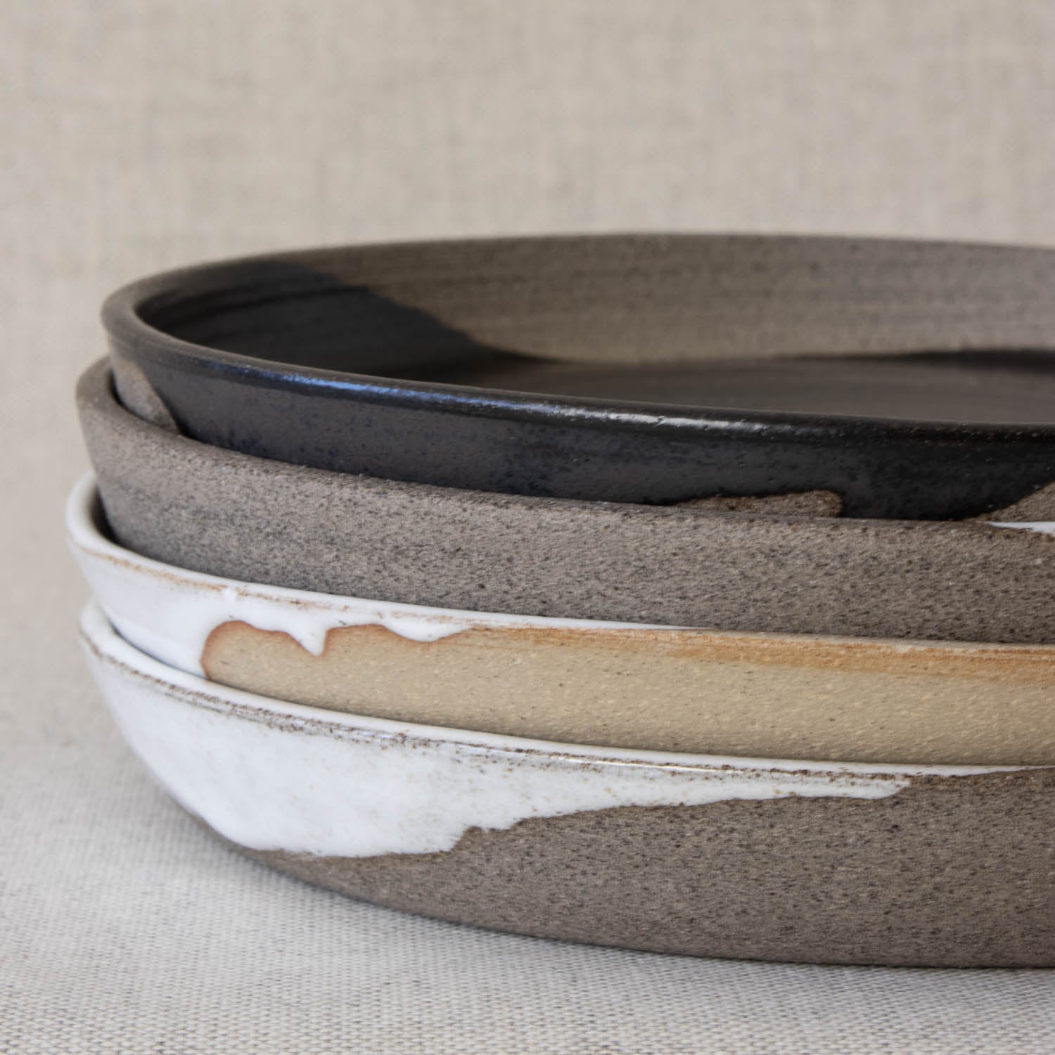 All plates are made to order and are only thrown after ordering. Ceramics is a slow process - the plates must be thrown, dried, fired, glazed and fired again. Each firing takes about 2 days, and sometimes I have to wait for space in the kiln ( read more about it here ). Due to their size, I can only fire a few plates at a time, which makes the delivery time a bit longer. But it could be faster and I will always send you the plates as soon as they're ready!