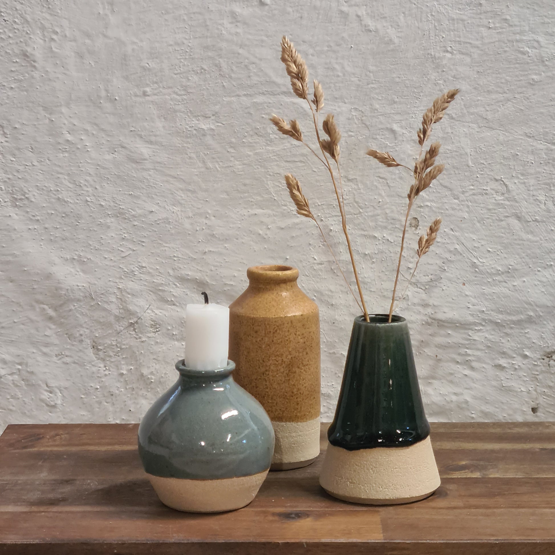 More about clays and glazesI have selected a couple of standard glazes and clays that I work with. The colors are neutral, close to nature and fit well together. I find the meeting between clay and glaze exciting - I want you to see the clay with its structure, that it is not perfect. Therefore, many of my products are only partially glazed.