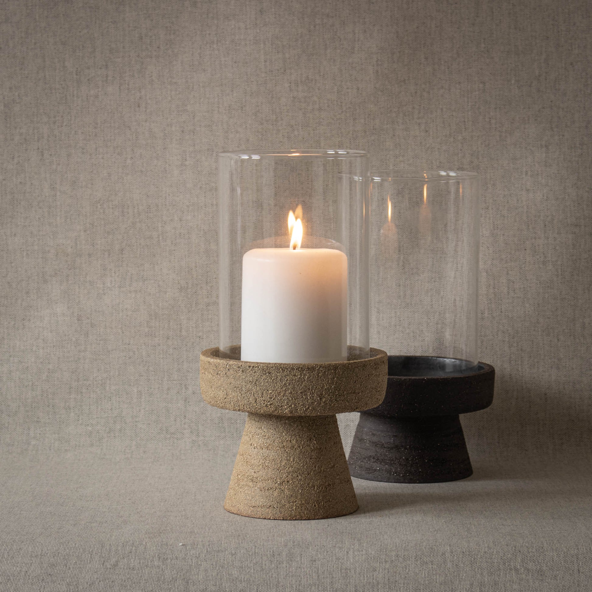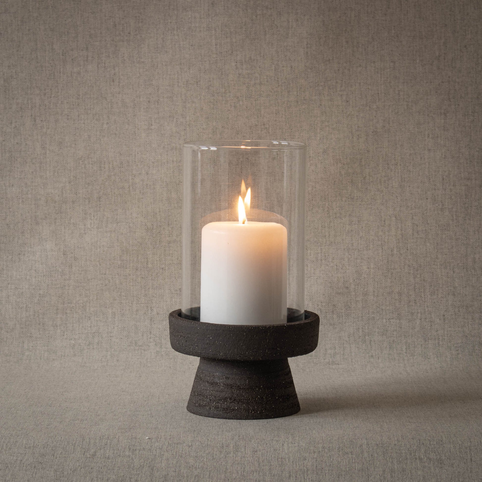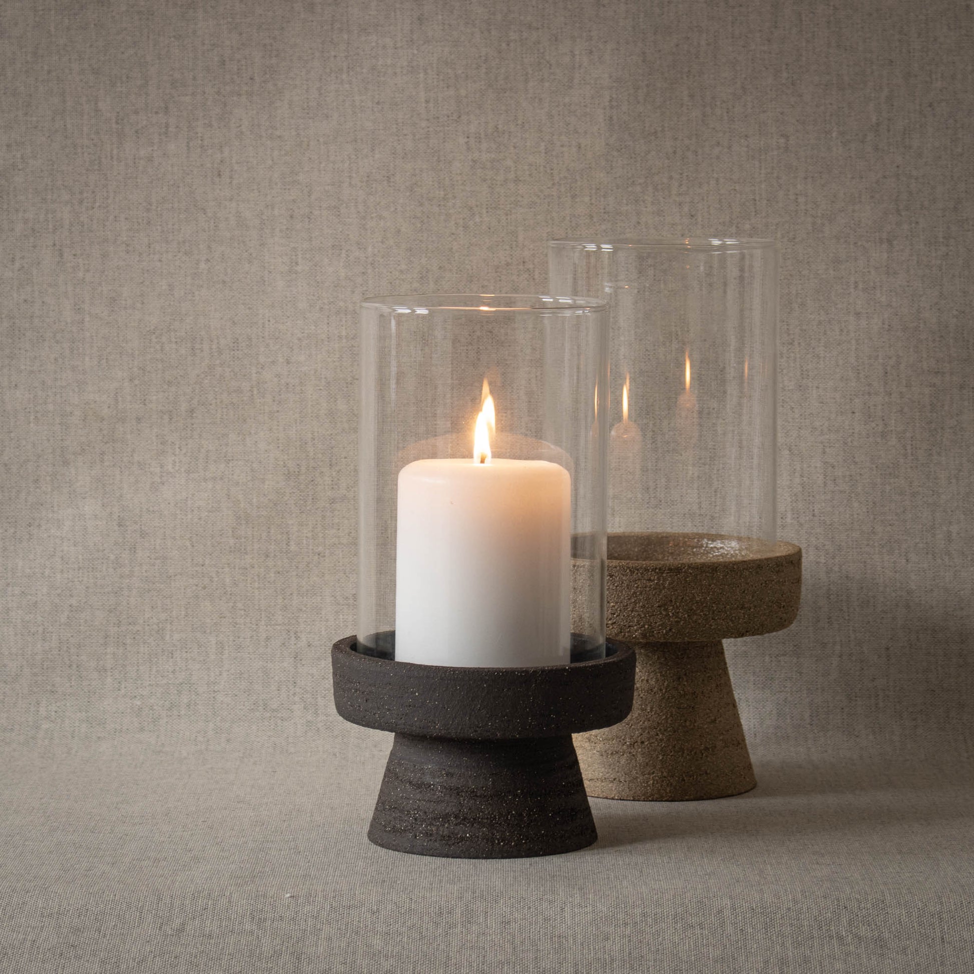 Time to embrace autumn! This block candle lantern comes in two different colors, a brown rough and a black rough clay. The glass cup protects the flame so that the lantern can also work outdoors.