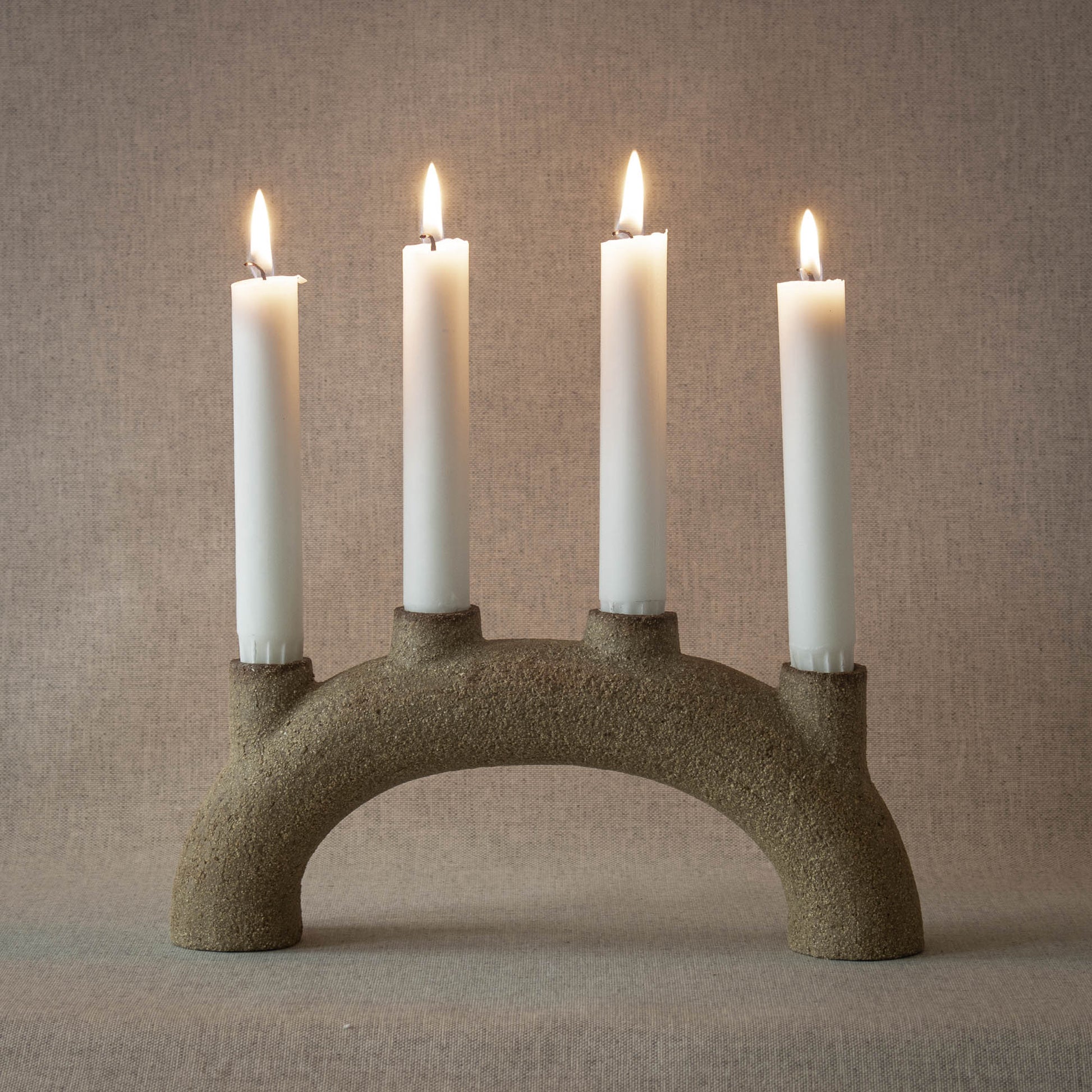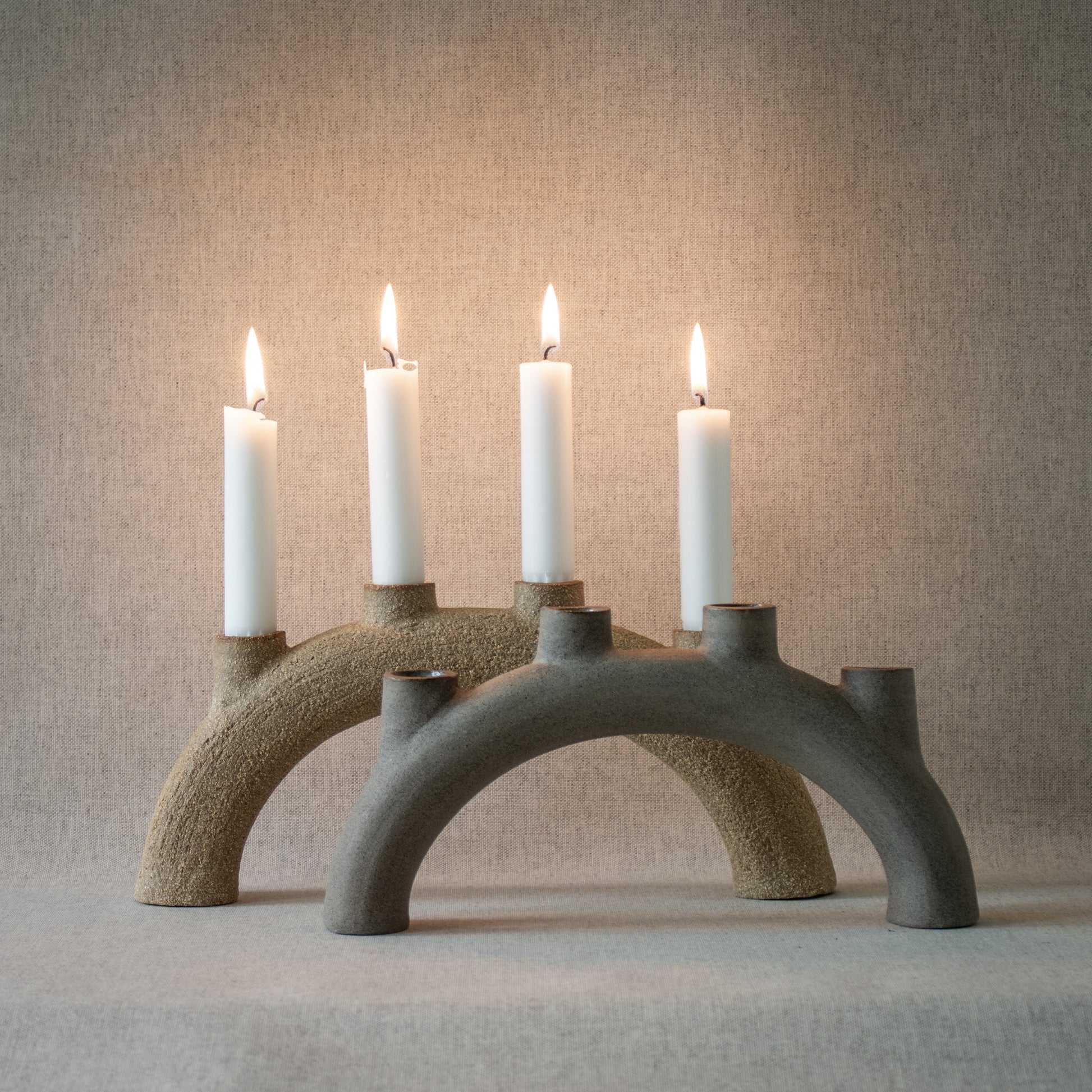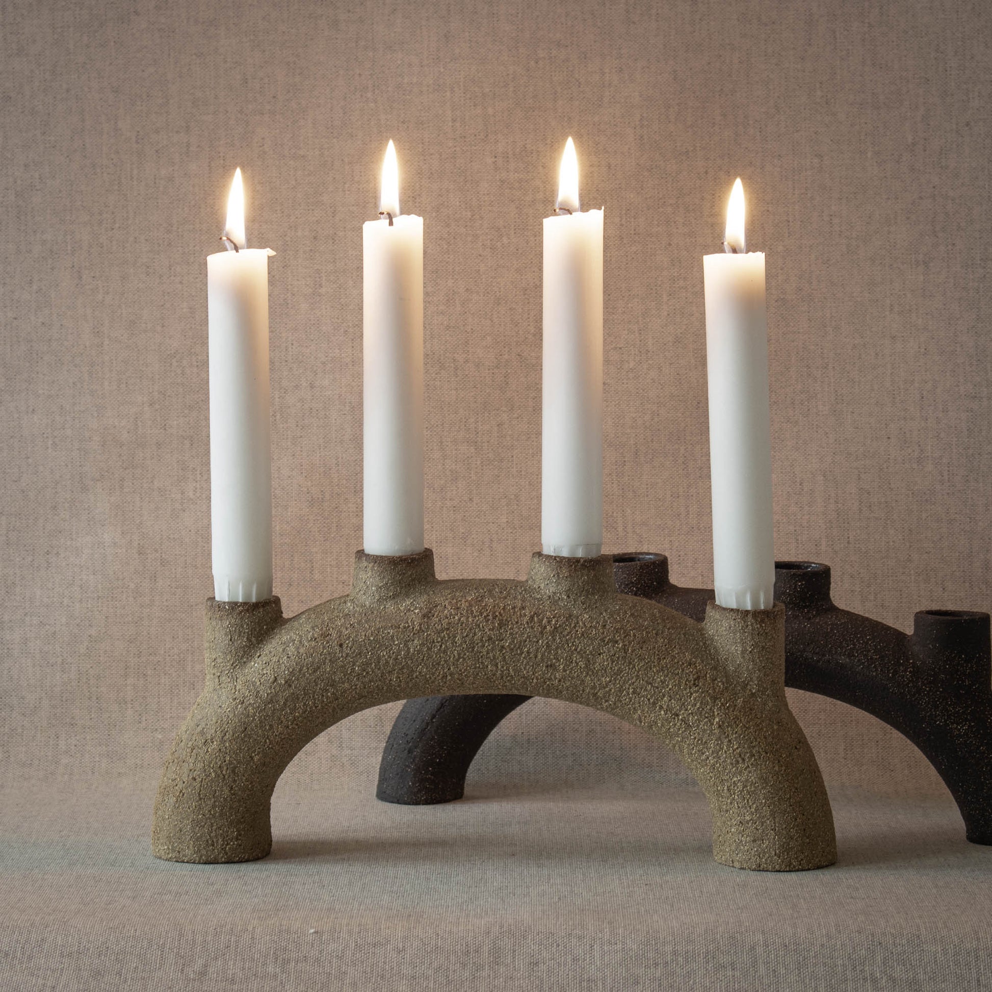 Time to embrace autumn! Candlestick with holder for 4 candles, so that it becomes a stylish Advent candlestick. Available in two different colors, a brown rough and a black rough clay.
