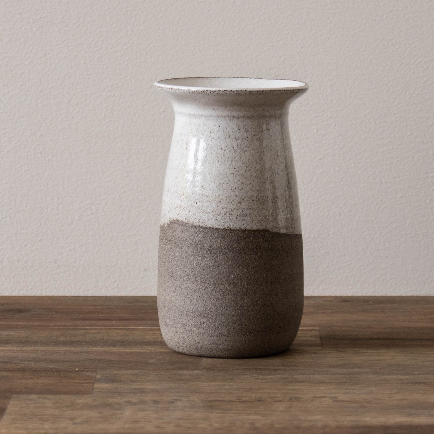 Drejad i grå lera med vit glasyr.