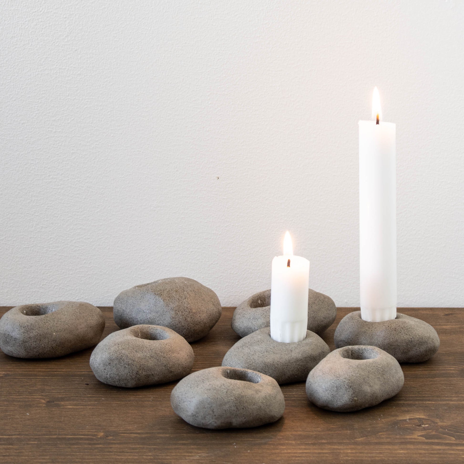Sometimes the simple is the most beautiful. These candlesticks are inspired by ordinary gray stones. Neat and discreet, they still stand heavy and steady. I imagine that they look great on the autumn dinner table, several together to really enjoy the autumn darkness.