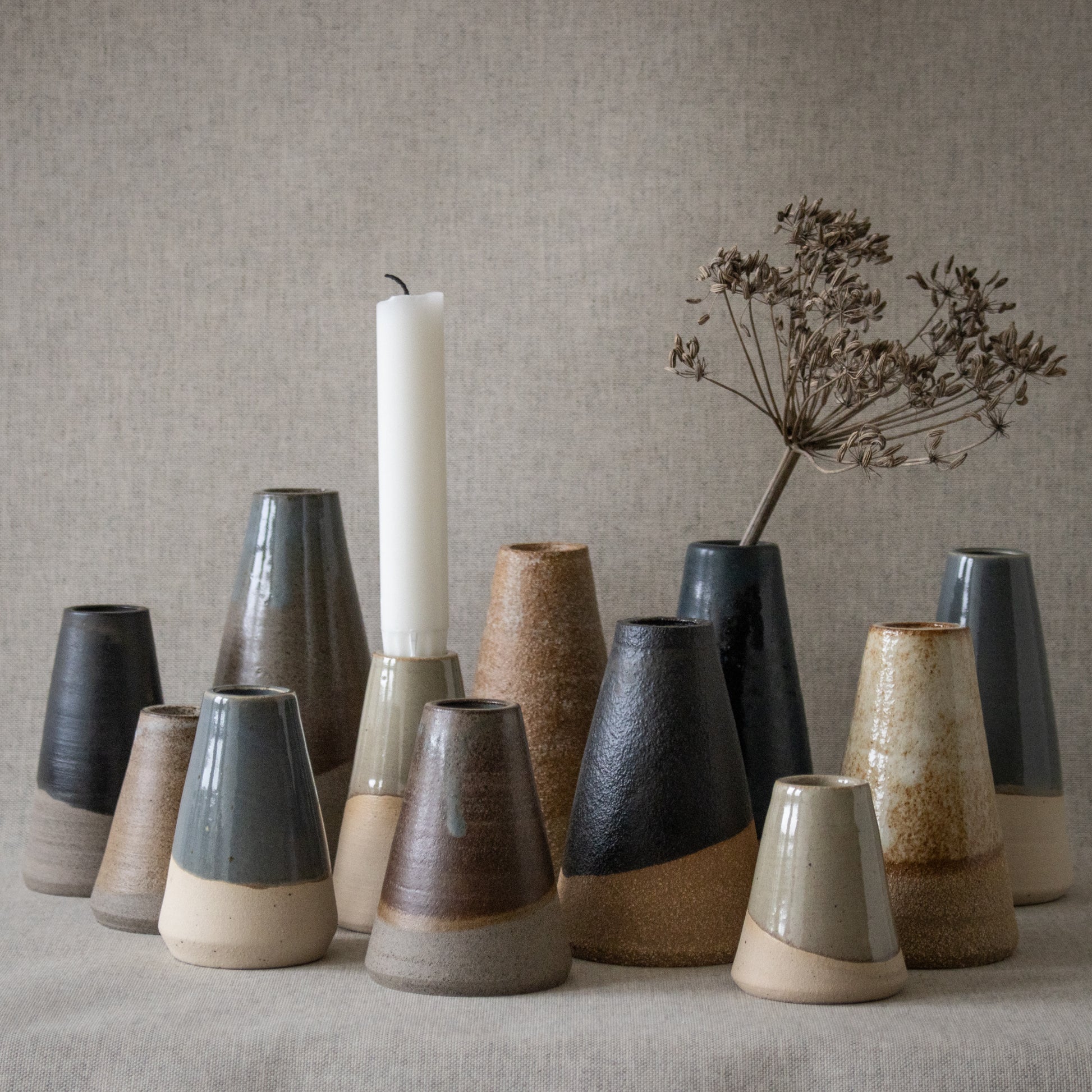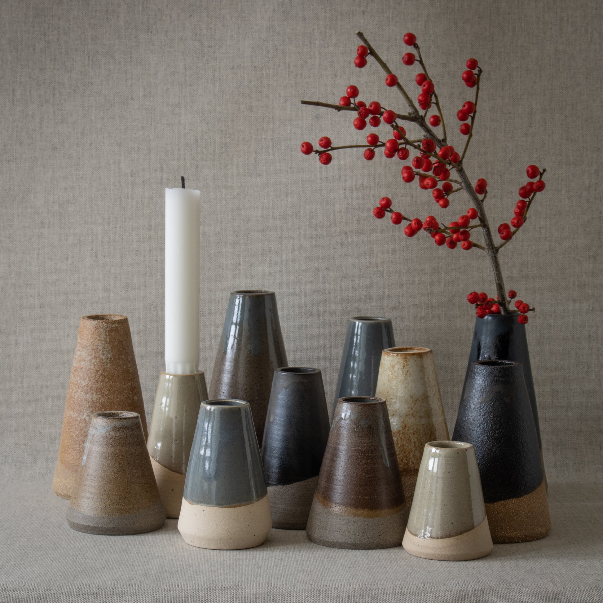 More about clays and glazesI have selected a couple of standard glazes and clays that I work with. The colors are neutral, close to nature and fit well together. I find the meeting between clay and glaze exciting - I want you to see the clay with its structure, that it is not perfect. Therefore, many of my products are only partially glazed.