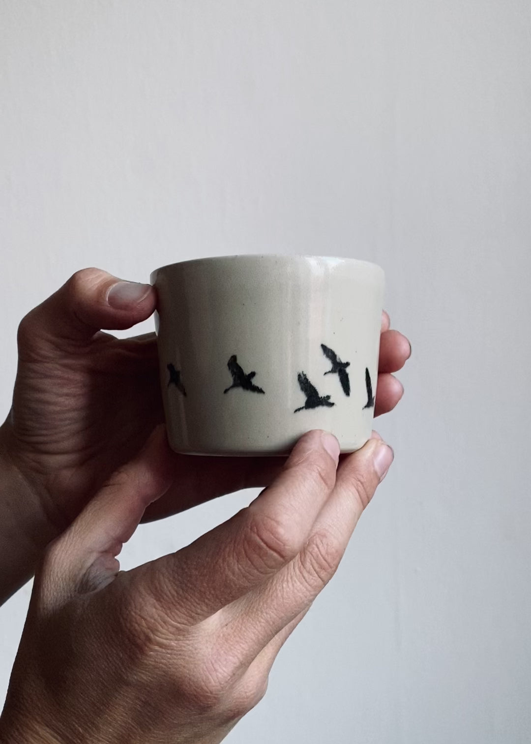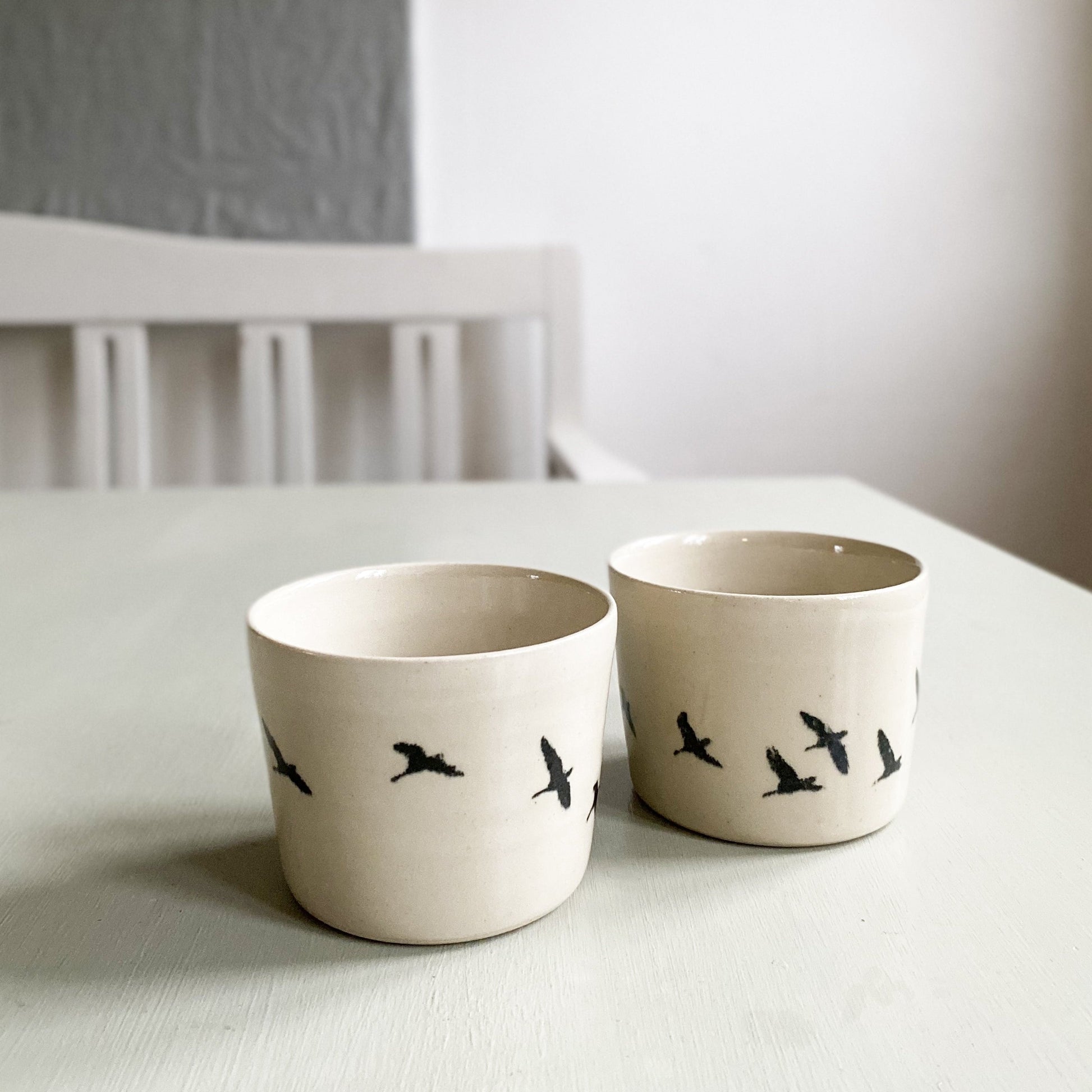 Throwing, screen printing and applying the print on the mug is all made by hand, which makes each mug unique!