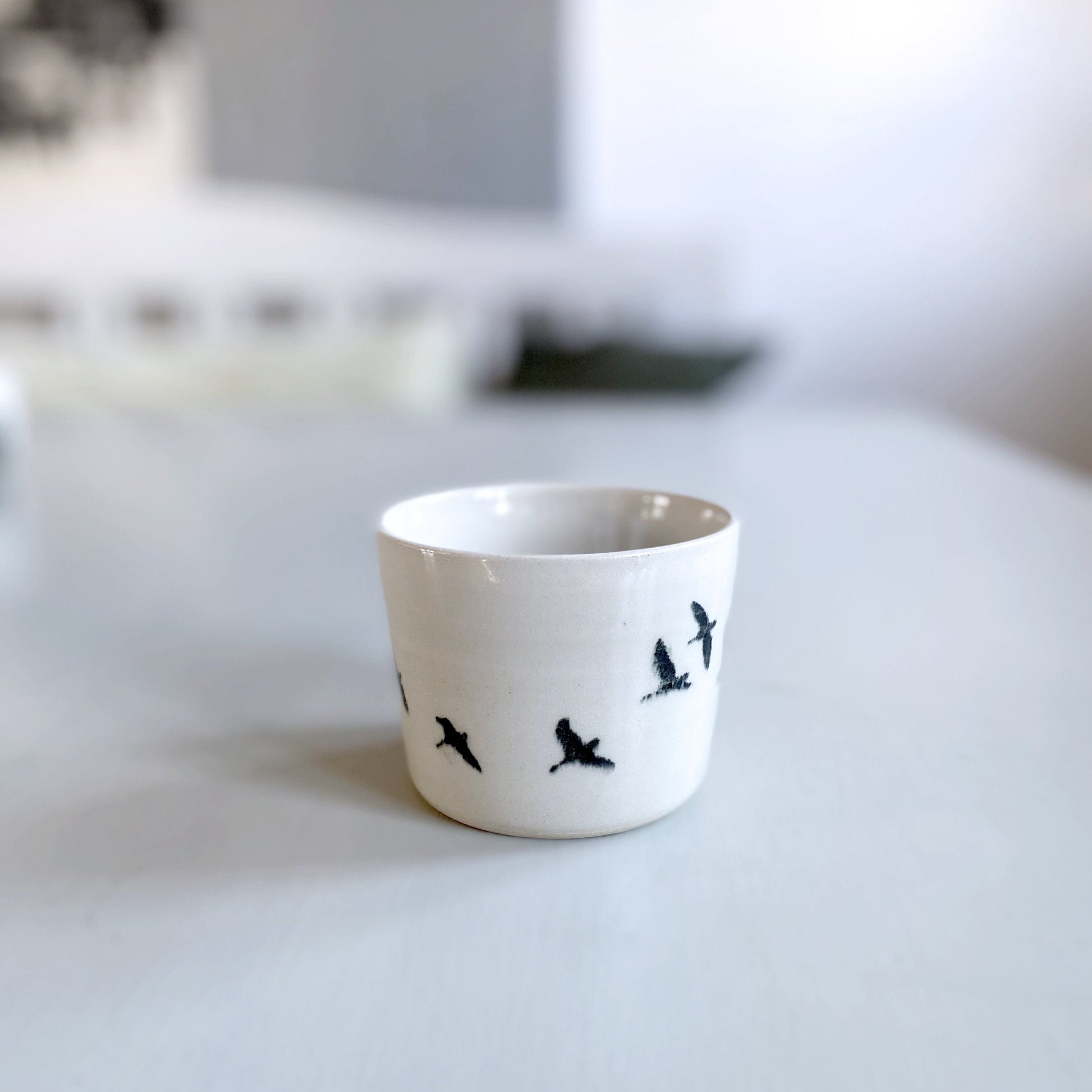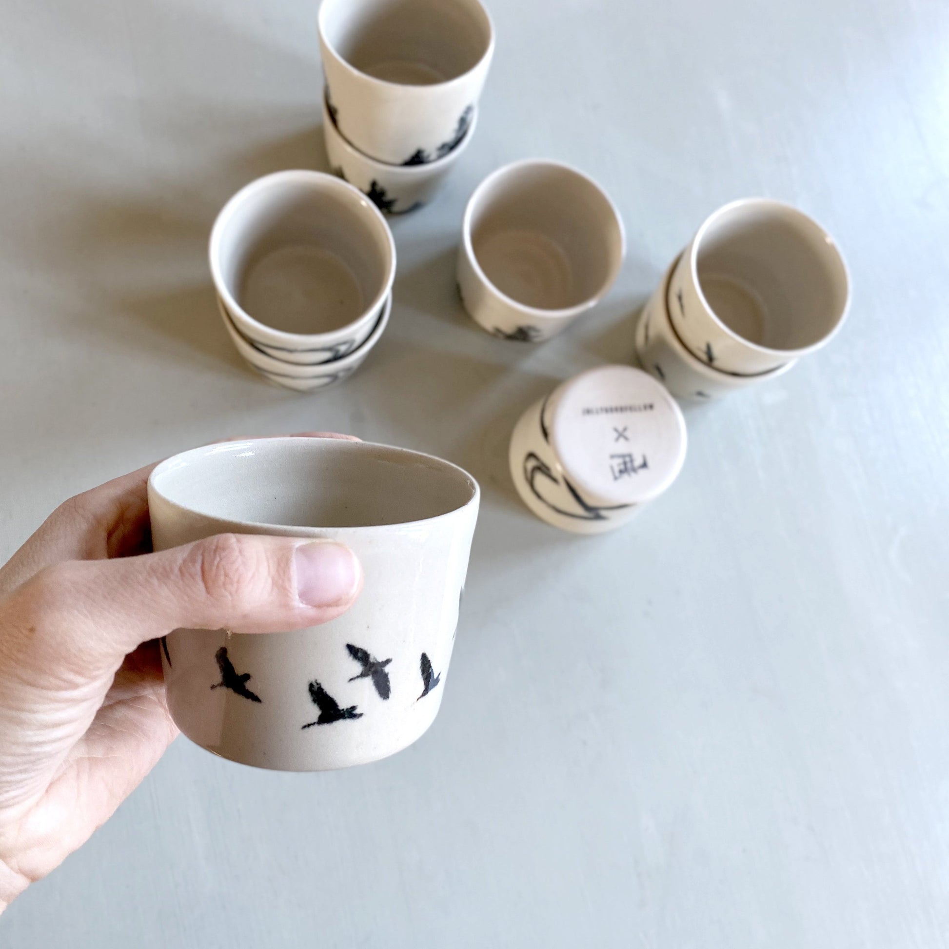 Maria has thrown every mug by hand. Lisa and Esa have screen printed the motif on tissue paper, which in the next step is applied to the mug. Then it has been carefully dried, bisque fired and glaze fired at Studio Latitud here in Skåne.