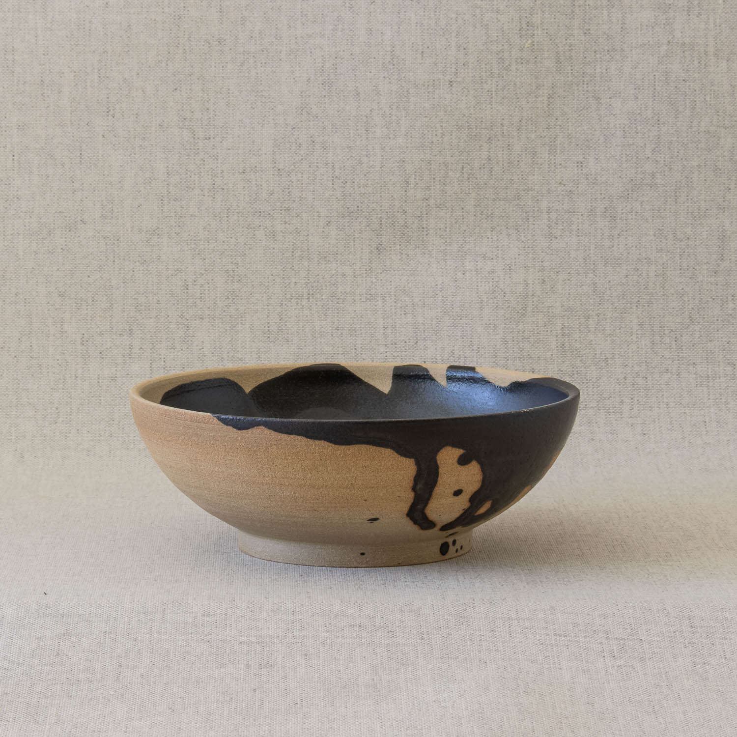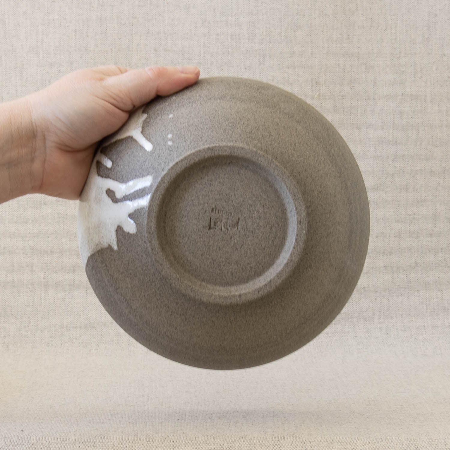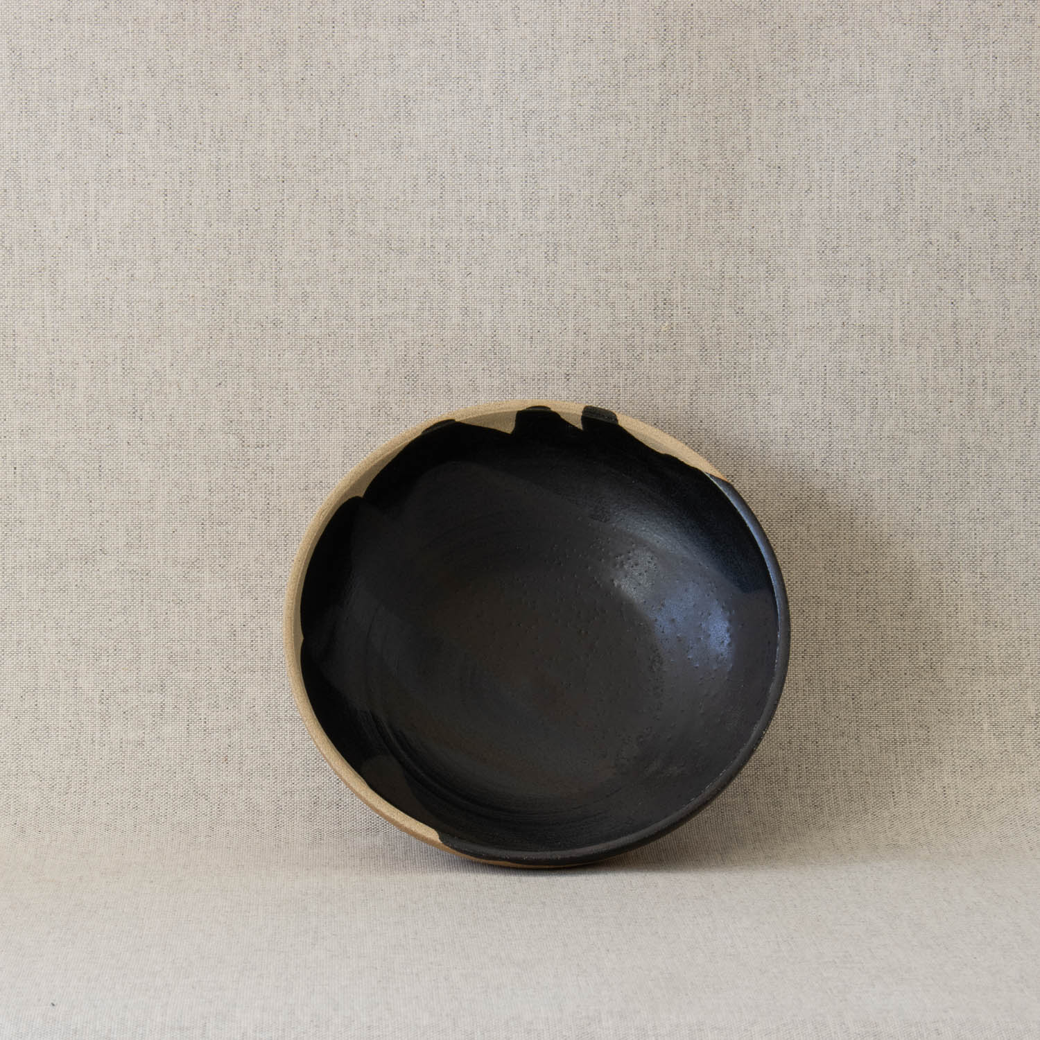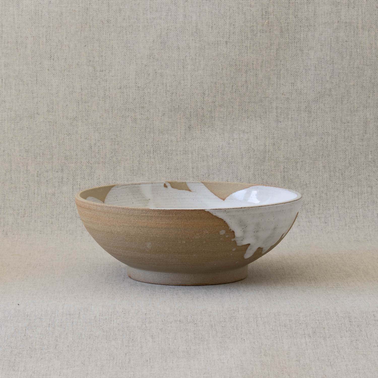 Finns i två olika leror (grå och beige) och två olika glasyrer (vit blank och svart sidenmatt). Glaserad på insidan och med rinn över kanten till den rå och oglaserade utsidan. Den oregelbundna glaseringen ger varje skål sin egen unika identitet.